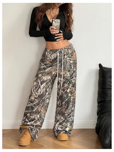 GORGLITTER Women's Camo Baggy Pants Camouflage Wide Leg Drawstring Waist Trousers with Pockets 6