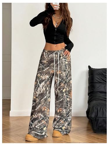 GORGLITTER Women's Camo Baggy Pants Camouflage Wide Leg Drawstring Waist Trousers with Pockets 1