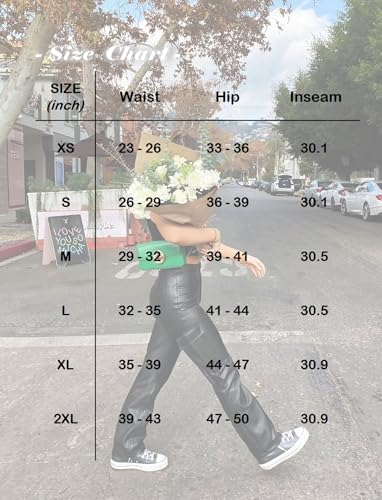 More information about Black Faux Leather Pants for Women High Waisted Flare Cargo Pants Y2k Straight Wide Leg Pleather Pants with Pockets