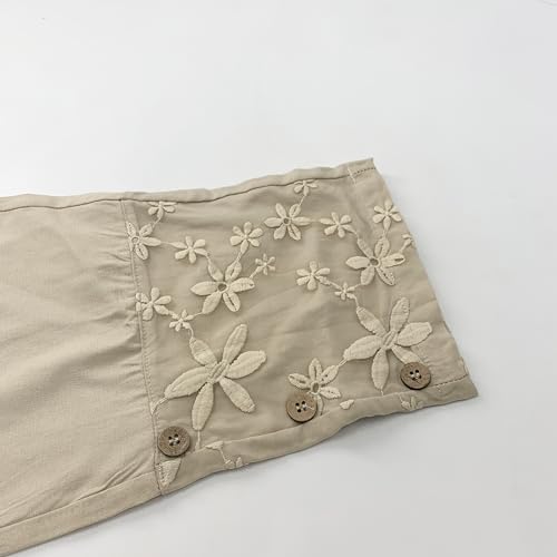 • 【Classic Design】:Pull on pants for women,high waist, solid color, loose comfortable fit,unique design daisy embroider,leg side lace stitching, lace hem,two side pockets and two hip pockets,wide leg,suitable to wear for spring and summer and fall.