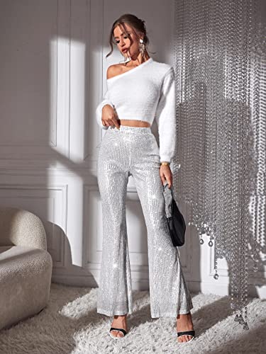 Floerns Women's Sequin High Waist Flare Leg Pants Bell Bottom Club Trousers 5