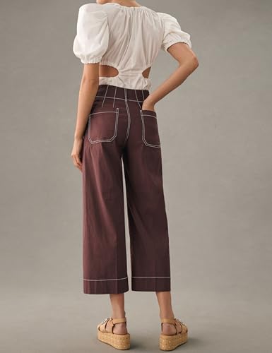 Womens High Waisted Wide Leg Pants Casual Loose Fit Dressy Cropped Hem Trousers with Pockets 2025 Fall Fashion Outfits 2