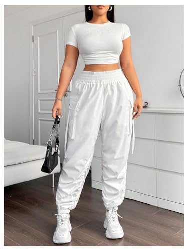 More information about OYOANGLE Women's Plus Size Cargo Pants Elastic High Waisted Ruched Workout Joggers Pants Streetwear