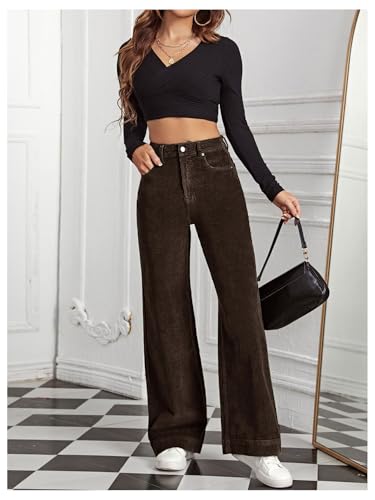 HOT ! Floerns Women's Vintage Corduroy High Waist Trouser Wide Leg Pants with Pockets
