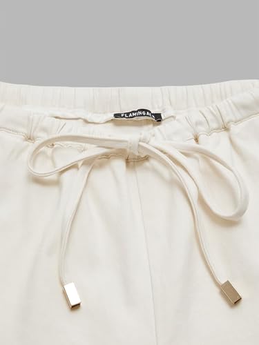 More information about Flamingals Women's Straight Leg Pants Baggy Mid Waist Casual Solid Drawstring Eyelet Waist Slant Pocket Pants