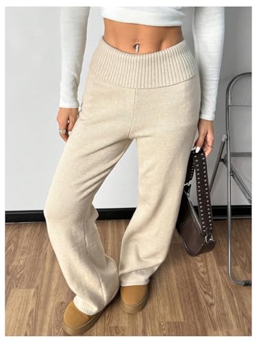 Verdusa Women's Fold Over Elastic Low Waist Lounge Pants Straight Leg Casual Sweater Pants 6