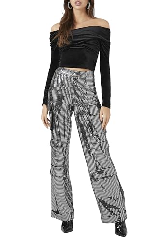 HOT ! Forever 21 Women's Metallic Wide-Leg Cargo Pants