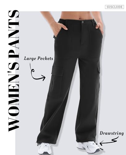 HOT ! Susclude Cargo Pants for Women - Wide Leg Baggy Pants High Waisted Cotton Pants with Pockets