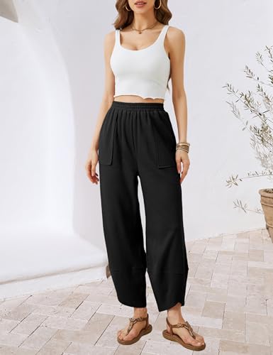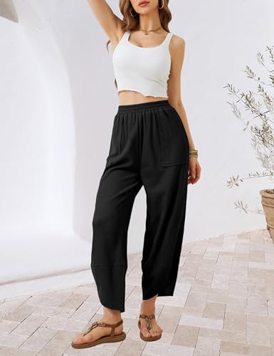 • Feature: Womens summer pants feature wide leg silhouette, high waist, elastic waistband, wrap design at hem, relaxed fit, ankle length, two big side pockets, solid color, loose sweatpants for women