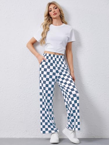 • Design: Y2K casual print pants features with checkerboard and plaid pattern, mid hight elastic waist, two side pockets, wide leg straight long pants. Simple but classic, make you look stylish.