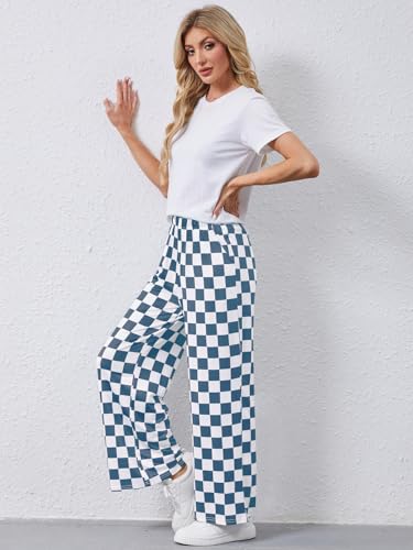 YKR Checkered Pants Women Casual Loose Wide Leg Straight Lounge Comfy Y2K Gingham Pants with Pockets 1