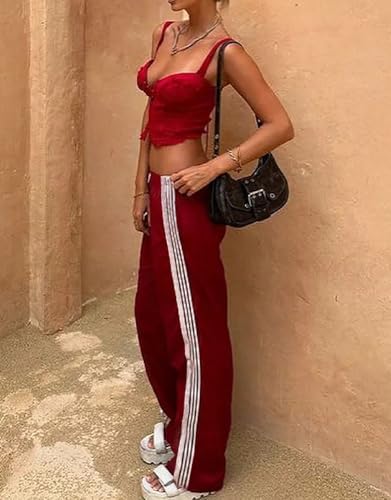 More information about Women Y2k Wide Leg Track Pants Elastic Waist Side Striped Baggy Sweatpants Trendy Loose Fit Jogger Palazzo Trousers