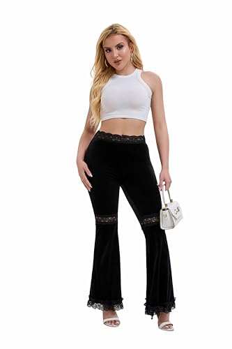 • Features:high elastic waist with lace trimed,super soft and stretch velvet fabric,bell bottom design,solid black color,full length