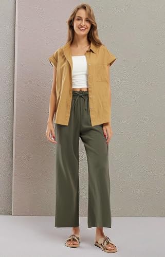 Libin Women's Imitation Linen Pants High Waist Wide Leg Casual Palazzo Pants Beach Cropped Trousers Summer Outfits 6