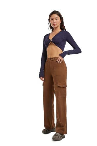 HOT ! Aodrusa Brown Pants for Women High Waisted Stretch Straight Leg Cargo Pants with Pockets Trendy Trousers