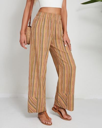 HOT ! Striped Palazzo Pants for Women Summer Casual Elastic High Waisted Wide Leg Beach Pants Travel Vacation Outfits