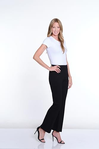 SLIM-SATION Women's Wide Band Elastic Waist Pull Over Flare Leg Pant-Short Length 4