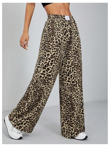 • Feature: Letter Patched, Leopard Print, Elastic Waist, High Waist, Wide Leg, Loose Fit Pants for Women