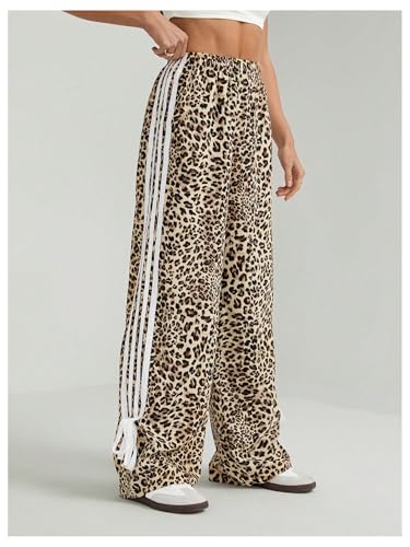 HOT ! MakeMeChic Women's Leopard Print Striped Pants Bow Side Wide Leg Y2k Trousers