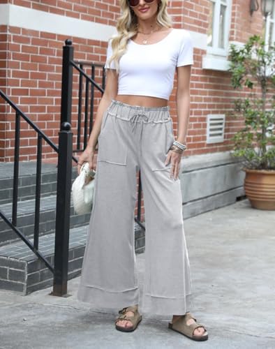 HOT ! Womens Wide Leg Pants High Waisted Adjustable Drawstring Palazzo Pants Lounge Flowy Dress Trousers with Pockets