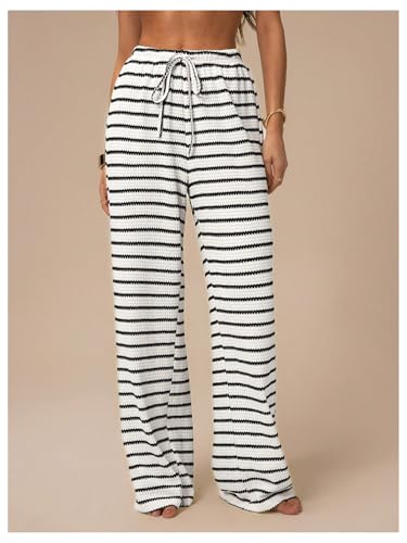 • Feature: Casual loose striped pants for women, drawstring waist, knitted fabric, wide leg, loose fit, casual style