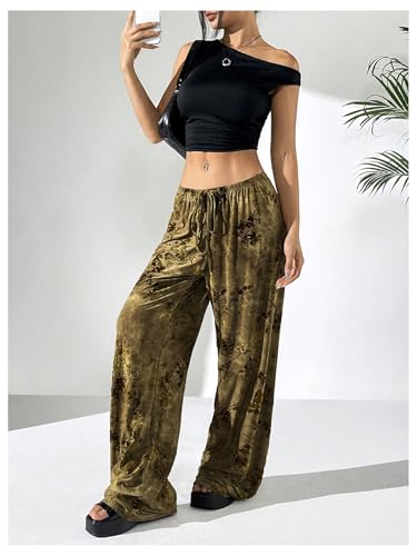 Women's Retro Graphic Straight Leg Pants Drawstring Waist Low Rise Long Trousers 1