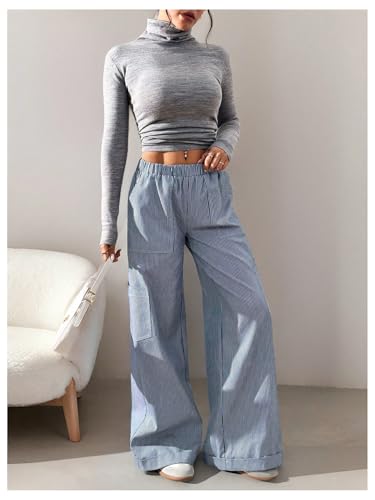 More information about MakeMeChic Women's Elastic Waist Striped Pants Wide Leg Baggy Trousers with Pocket