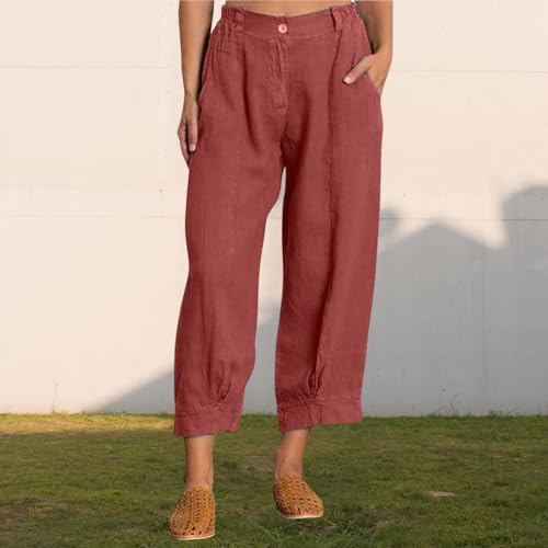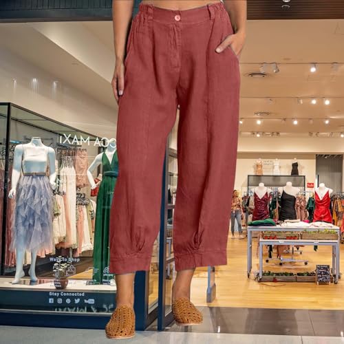 HOT ! Linen Capri Pants for Women Casual Loose High Waisted Wide Leg Crop Pants Lightweight Trousers with Pockets
