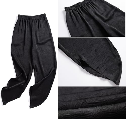 More information about Women's Satin Pants Baggy Dressy Trouser Wide Leg Slouchy Curved Hem Wrinkle Textured Silky Pants