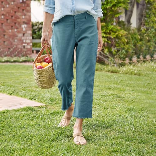 HOT ! Cotton Linen Cropped Pants Women Straight Leg Capris Summer Business Casual Work Pants Ankle Length Chino Trousers