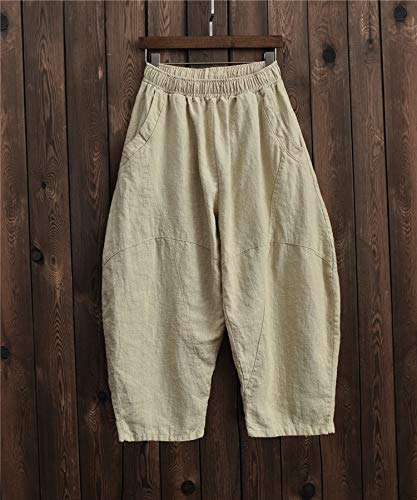 LUZU JUNU Womens Summer Cotton Linen Cropped Capri Trouser Casual Loose Wide Leg Baggy Pants 6