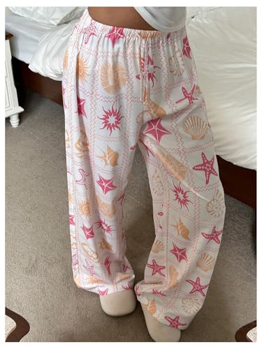 • Feature: All Over Print, Starfish, Sea Shell Print, Low Rise, Straight Leg, Loose Fit, Pants for Women