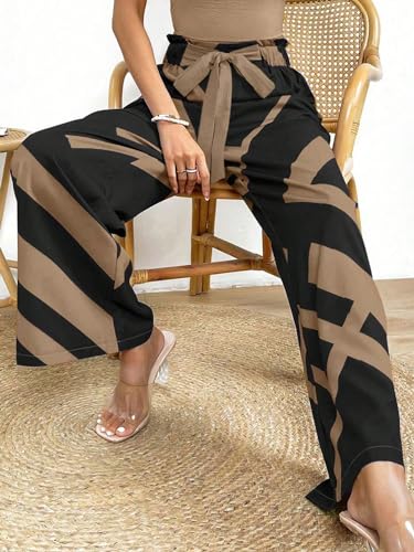 • Feature: Geo print, elastic waist, paperbag waist, casual wide leg pants for women
