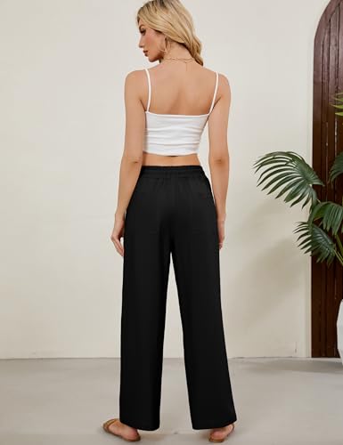 • Design: Wide leg womens linen pants trousers is featured with elastic waist & drawstring, two side pockets and two rear pockets, high waisted, solid color, wide leg palazzo linen pants for women