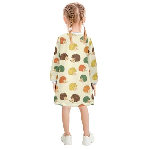 Girl Long Sleeve Dress Colorful Hedgehogs on Cream Girls Dresses A-Line Casual Tunic Playwear 2-8 Years 6