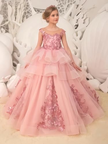 Flower Girl Dresses for Wedding Tulle Princess Pageant Dress for Girls Lace Applique Kids Prom Party Ball Gown 5