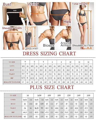 • SIZE: Have Standard 0-26w Please refer to the left Size Chart before purchasing. Standard Size not Fit,Dont worry,please send your actual measurements ( bust, waist, hip, height, hollow to floor ), and color,then we will custom make this dress for you.