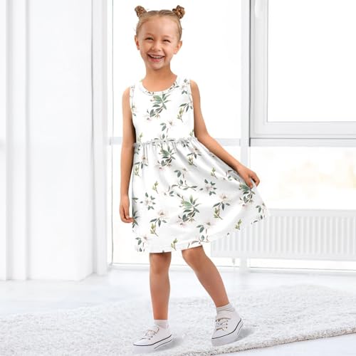 Magnolia White Flowers Girls Casual Dress Cotton Summer Clothes for Kids 2T-8Y 3