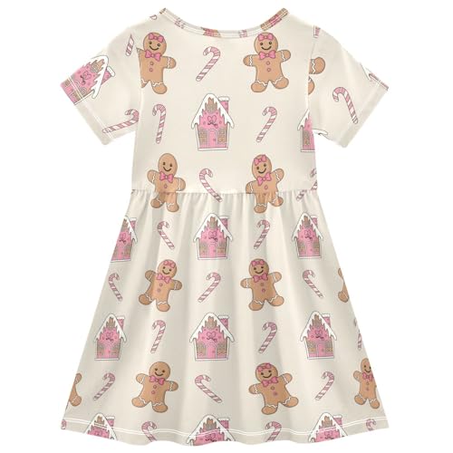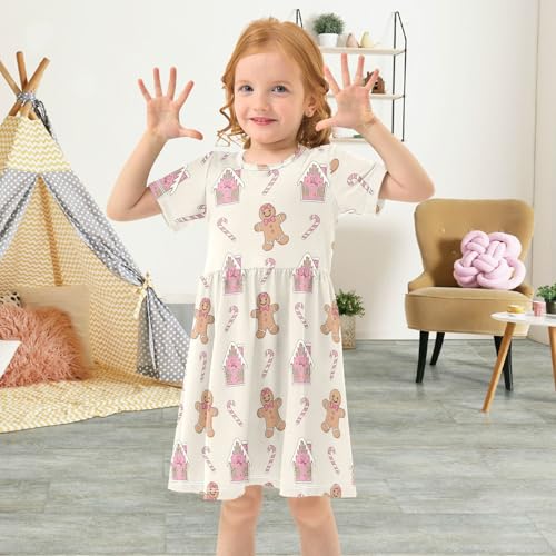Girls Summer Dress Short Sleeve A Line Gingerbread Houses and Candy Canes Casual Dresses for Kids 2-8 Years 6