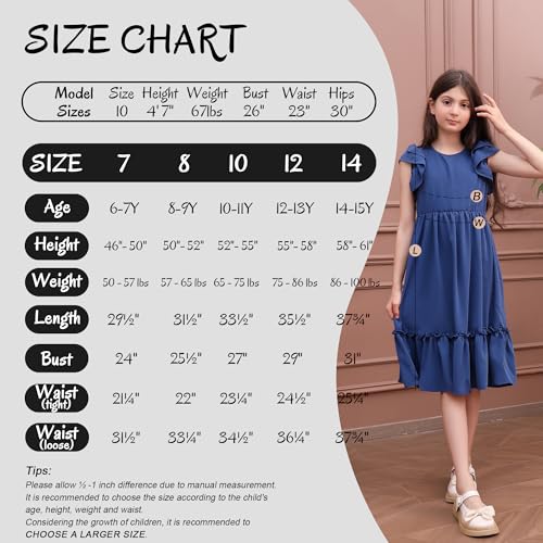More information about Teen Girls Dresses - Kids Double Layer Ruffle Sleeve Dress & Girls Boho Sleeveless Summer Midi Dress for 6-14 Years