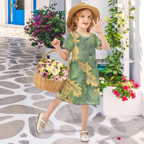Toddler Dresses for Girls 2t Green Yellow Oak Leaves Autumn Short Outfit Cute Beach Dress Little Girl Dress 4