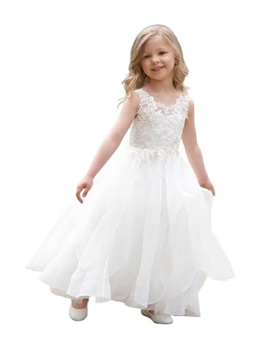 Flower Girl Dress for Wedding Lace Appliques Princess Pageant Dress Tulle First Communion Dress for Girls Ball Gowns 6