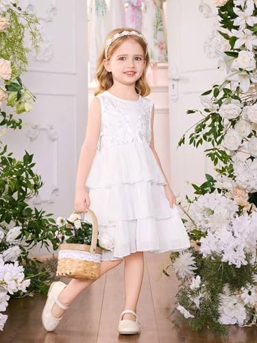 Lace Applique Flower Girl Dress for Wedding Chiffon Tiered Sleeveless A-Line Short Crew Neck Princess Ball Gowns 4