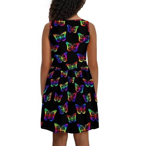 Little Girls Sleeveless Pocket Dress Butterfly Mermaid Scale Water Texture Summer Outfit for 2-14Y 5