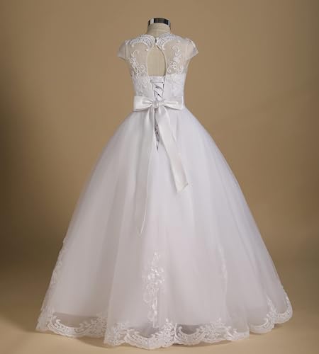 Tulle Lace Flower Girl Dress Pageant Maxi Dresses for Girls Ball Gown Floor-Length with Sash, Beading, Back Hole 6