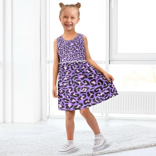 Girls Neon Purple Pink Leopard Dress Sleeveless Dress Summer Cotton Sundress 6Y 6