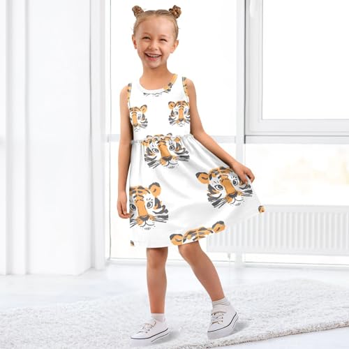 Girls Sleeveless Dress, Tiger Head Summer Dresses Loose Fit Casual Sundress 6