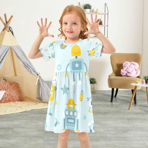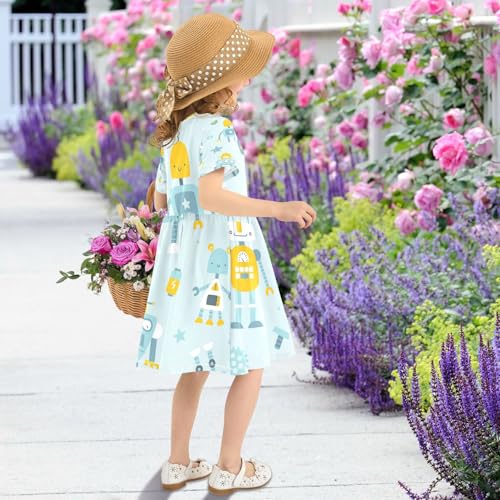 Cute Blue Robots Girls Dress Short Sleeve Dress Girls' Summer Sundress 4T 6