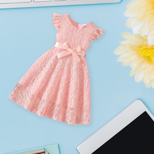 Kids Girls Dresses Lace Fly Sleeve Ruffle Tulle Dresses Cute Toddler Summer Party Princess Sundress 6