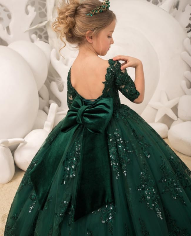 Girls Pageant Dresses Short Sleeve Flower Girl Dess with Bow Tulle Lace Appliques Formal Ball Gown 3